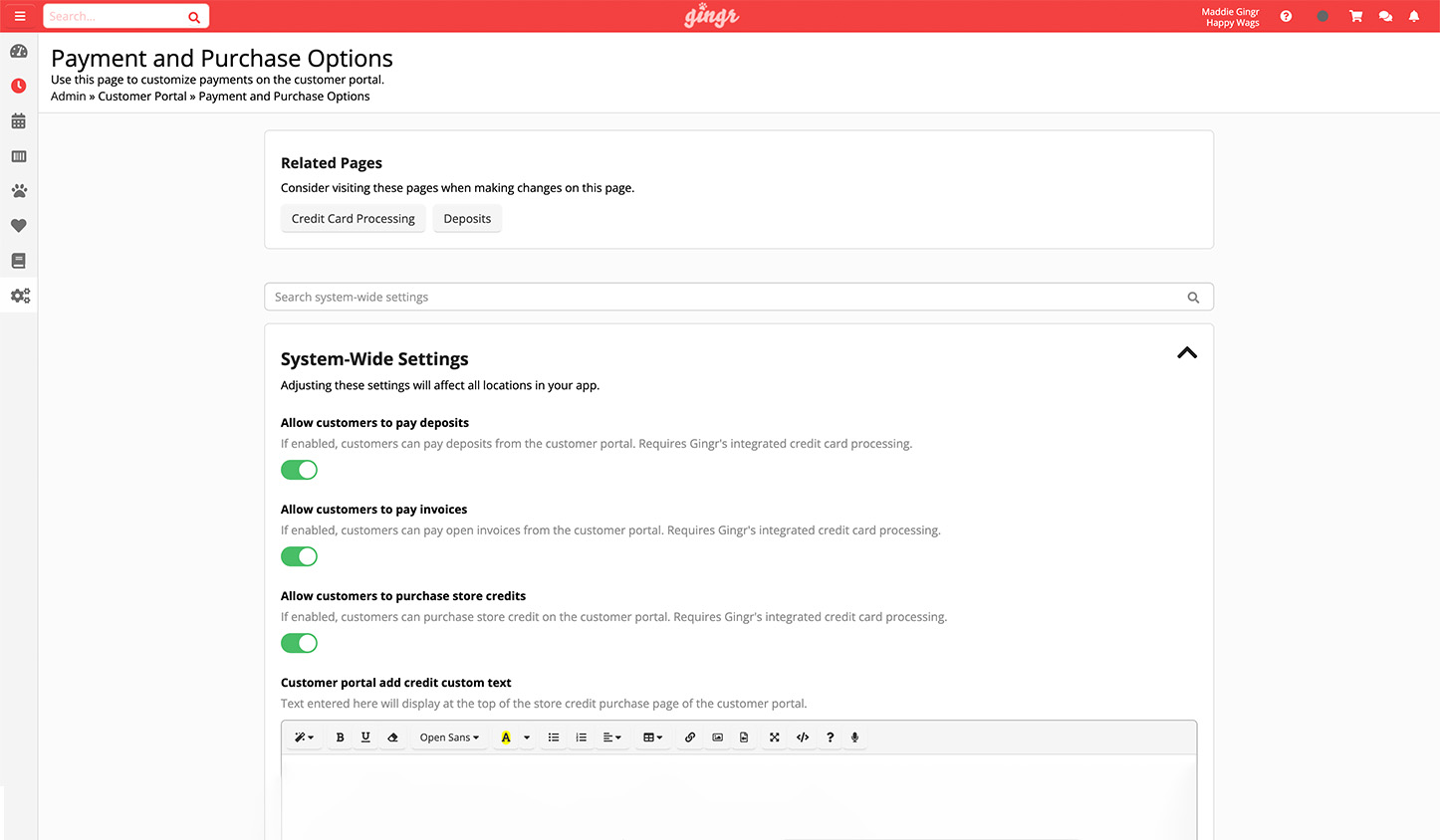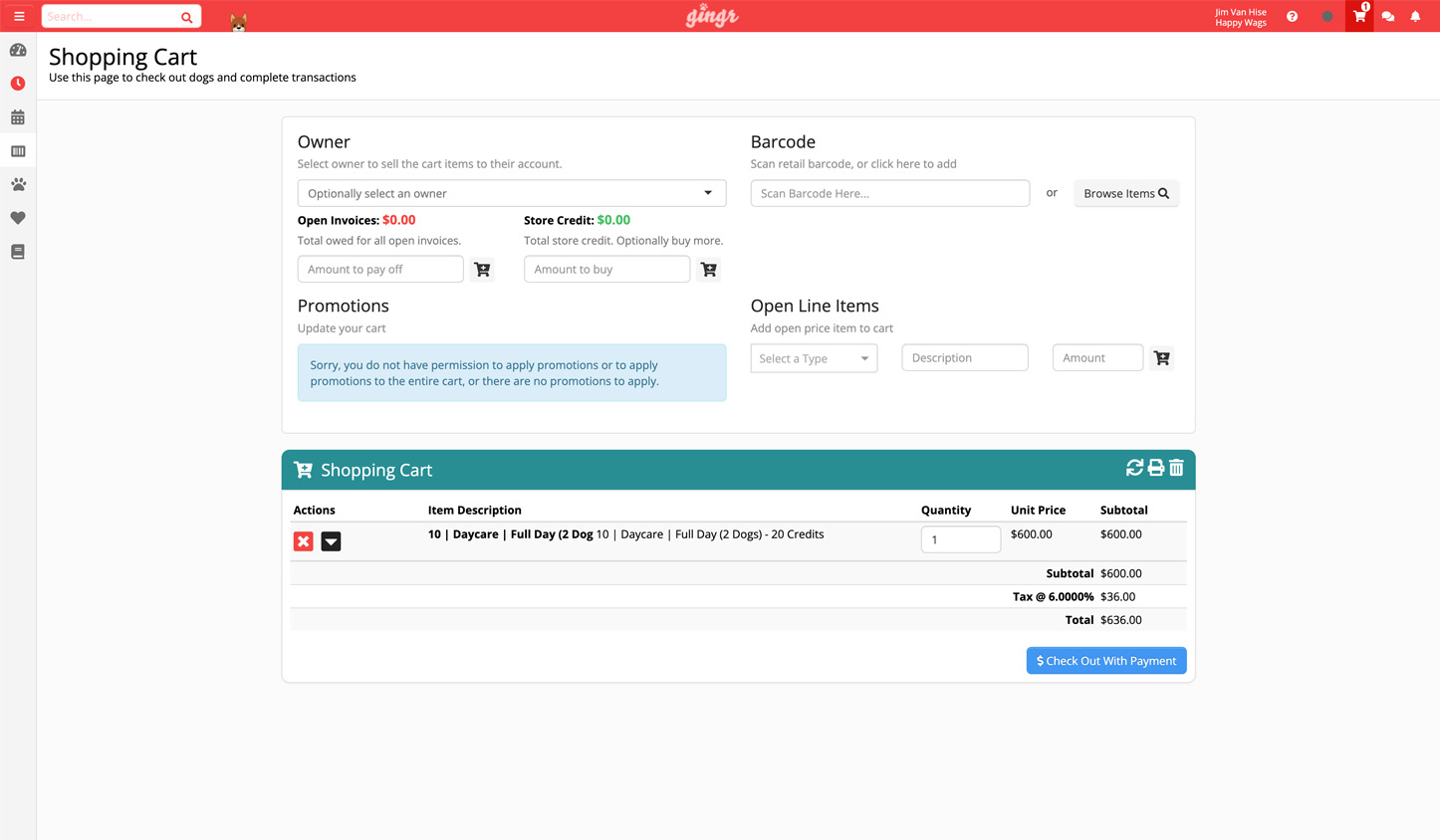 These actions are handled from Gingr, and you can issue the refund in just a few clicks without calling for support or wrangling a physical terminal. First, you’ll need to ensure the user issuing the refund holds the relevant permissions in the system. From there, you or the staff member can use Gingr’s flexible tools to handle the situation.